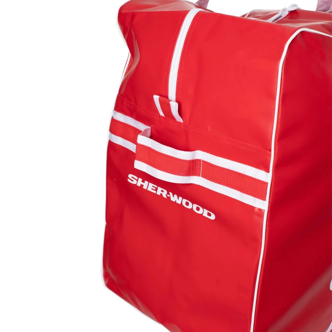 - Built with pro-spec tarpaulin and even constructed in Canada, this Sherwood Hockey Bag won’t succumb to the elements, locker room, or travel.